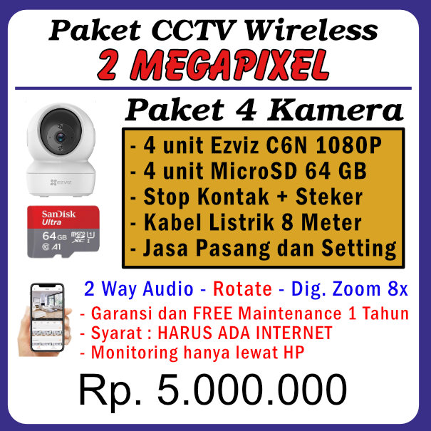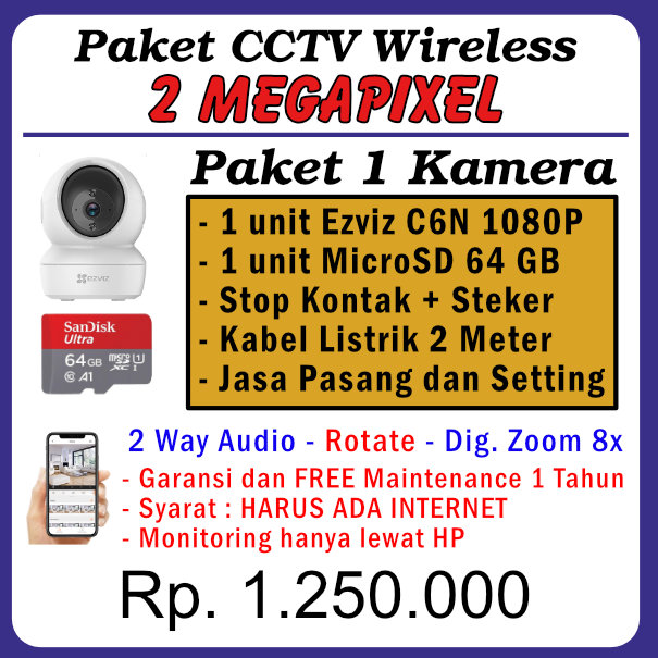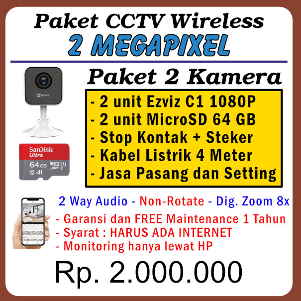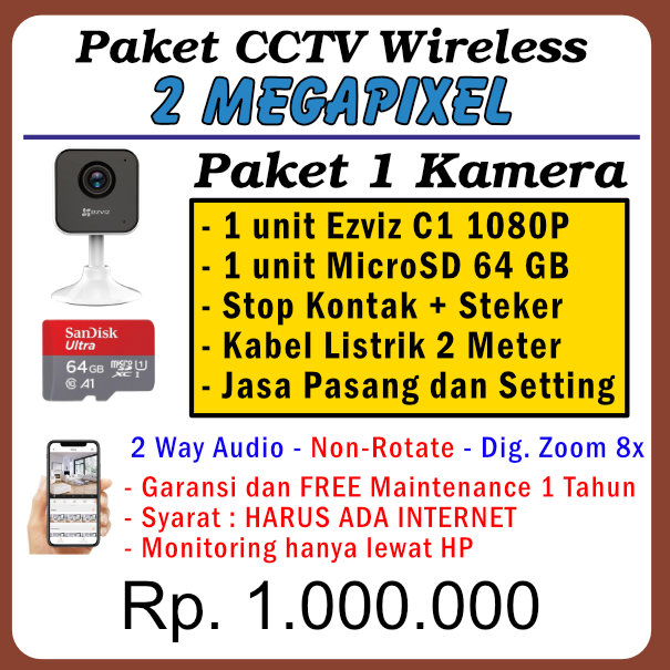PAKET KAMERA EZVIZ WIFI C1HC – 2 Megapixel