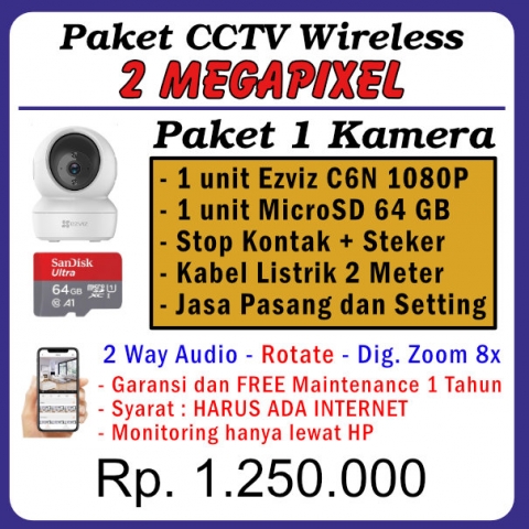 PAKET KAMERA EZVIZ WIFI C6N – 2 Megapixel